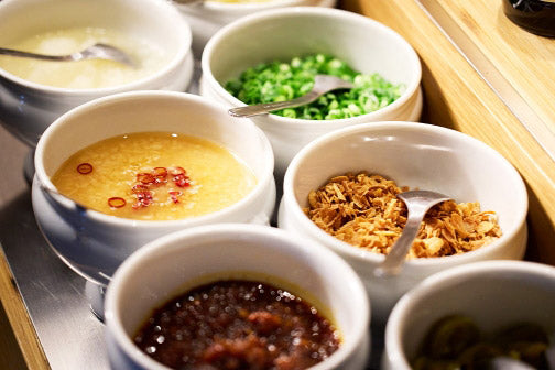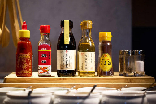 しゃぶしゃぶ・すき焼きをもっと楽しめるよう、世界で見つけた薬味をご用意しております。初めはタレ本来の美味しさを楽しんでいただき、少しずつ薬味を足し、お客様好みの美味しいタレをお作りいただけます。